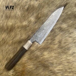 TLVN-Dao Kiritsuke Gyuto đa năng chuyên thái thép Damascus lõi Bohler K110 cán gỗ mun khâu sừng trâu