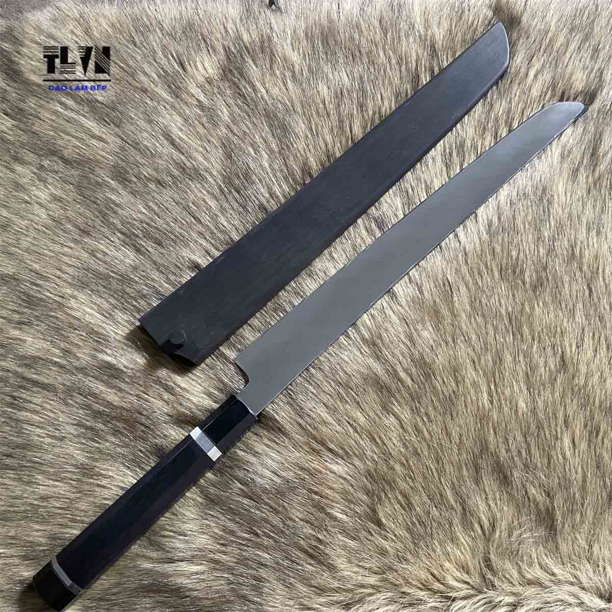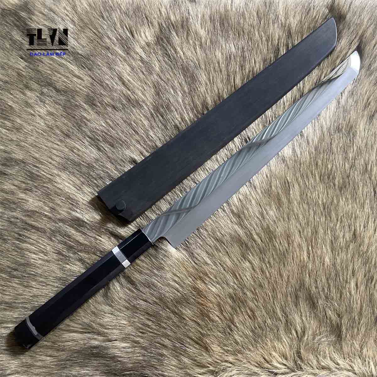 TLVN-Dao Bếp Cao Cấp Takohiki Yanagi chuyên sashimi thép Bohler K110 hoàn thiện bóng gương mặt trước